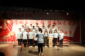 本次比赛每个参赛年级代表队有两首参赛曲目,其中,参赛歌曲《国家》,揭示了国和家之间相依相伴,相辅相成,密不可分的关系,告诉我们要热爱我们的国和家,只有这样我们的家才会幸福,我们的国才会强大; 《我和我的祖国》唱出了同学们对祖国未来充满希望的美好心声,《明天会更好》唱出了他们对美好明天的向往以及广大青年积极、向上、乐观的一面。舞台上,同学们热情洋溢,声音洪亮;指挥员手势精准,富有激情;掌声此起彼伏。全院七支队伍用大气磅礴的歌声和旋律歌颂了中华民族自强不息的伟大精神、阔步向前的豪迈气概, 唱出了新时代青年对党、对祖国、对共青团的浓厚深情和热情讴歌,歌声催人奋进,气势振奋人心。