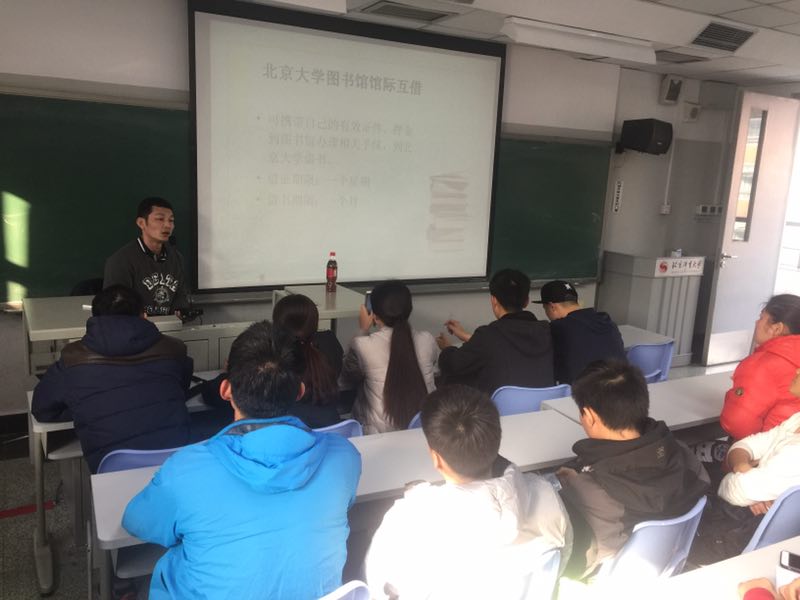 韩老师详细地为同学们介绍了Balis(即“北京地区高校图书馆文献资源保障体系”)的创设原因及宗旨,讲解了该系统的三大服务功能“馆际互借”、“原文传递”、“综合信息”,并告知了注意事项。随后,韩老师为大家演示了馆际互借系统“读者注册”及“借阅程序”。最后韩老师给大家讲述了几个发生在他自己身边的几个励志小故事,劝勉同学们多读书、读好书,要利用好研究生在校的三年时间,养成良好的习惯,合理地规划人生。