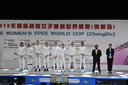2019年国际剑联女子重剑世界杯赛于3月23-25日在四川省成都市成功举办,来自26个国家和地区的168名选手参与了角逐。Beat365重竞技教研室许丽娜老师代表中国籍裁判参与了该赛事的执裁工作,其在赛中执裁水平得到了国际剑联技术代表的一致肯定,并以第一主裁的身份执裁了该赛事的团体决赛场次。这也是近年来中国籍女性裁判员首次执裁世界剑坛冠亚军决赛场次!这充分向世界展示了北体教师国际化的专业执裁水准!