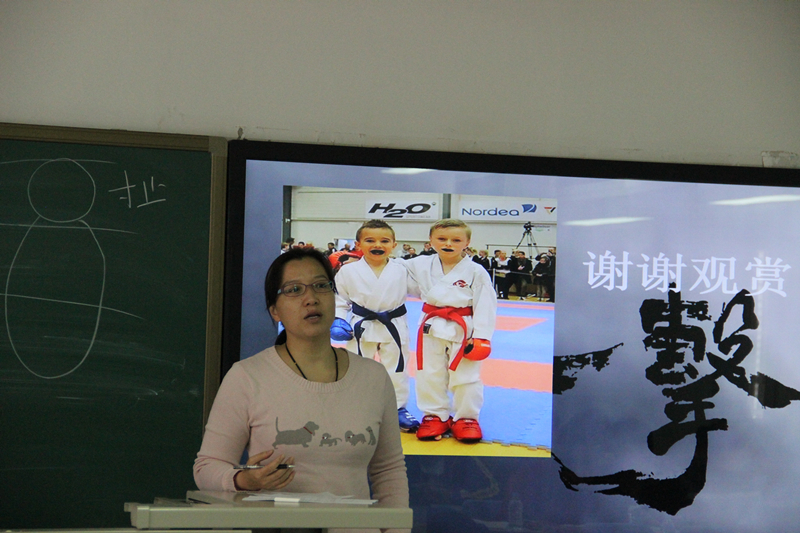 最后评审专家温宇红教授进行点评,从五个方面进行了总结。第一:学会如何引入课堂内容吸引学生眼球。表扬了邵艳、王大鹏以简短视频导入课堂内容,有效的调动了学生的积极性。第二:注重授课内容层层剥皮,引人入胜。张剑波老师让学生从每一个小故事领会动作的根本意义,启发性强,提高了教学质量。第三:师生适当互动。当课堂由老师主导演变成由学生主导,对于老师的教学方法有了更高的要求,老师必须运用更灵活的方式达到更好的教学效果。第四:突出重点和难点。第五:每位老师的小结都较精辟。