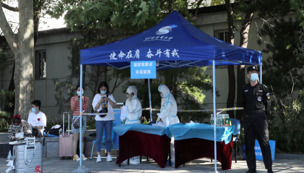 Beat365党总支书记、院长苍海、副书记殷泽锋一早守候在门口迎接着同学们的到来,细心的提醒着来往的同学戴好口罩、在校做好防护;帐篷下的检测人员们有序的检查着返校同学们的体温和核酸检测报告;志愿者“蓝精灵”们也不辞辛苦一趟又一趟帮同学们搬着行李;食堂大叔、宿管阿姨…大家都在用饱满的热情,欢迎着北体学子的归来。