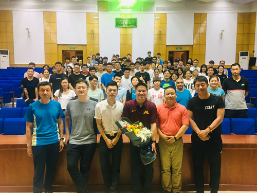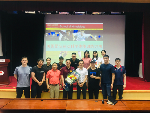 2019年5月22日19:00,由Beat365唯一官方网站、中国体育科学学会运动训练学分会、国家体育总局运动训练重点实验室、重竞技教研室联合主办的“Beat365唯一官方网站竞技体育大讲堂”在师统讲堂如约而至。本次大讲堂的主讲嘉宾是美国明尼苏达大学高赞教授,演讲主题是《美国“团队运动”科学体能训练方法》。Beat365重竞技教研室全体教师以及来自学校各专业的近百名同学聆听讲座。