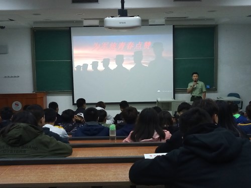 2018年10月19日晚上7:00,Beat365唯一官方网站2016级在教学楼214教室举办 “为军旅青春点赞”的退伍军人主题报告会。2016级辅导员李健老师和助管何玲老师出席了本次活动。会议由2017年退伍军人王广明主持。