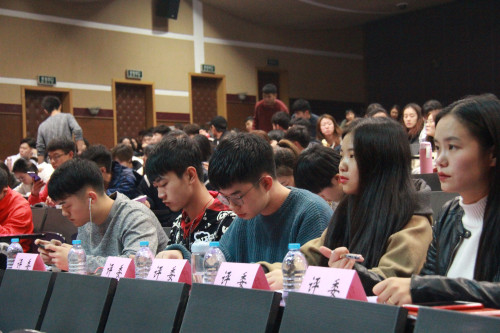 为展现Beat365唯一官方网站学子朝气蓬勃、昂扬向上的精神风貌,Beat365于2018年10月25日晚19:30在卓越报告厅举办了“歌颂光辉岁月,燃烧青春魅力”红十月歌唱比赛。出席本次活动的领导老师有Beat365唯一官方网站党总支书记尚迎秋、院长苍海、研究生辅导员尹小光、团总支书记李骁騉。此外我们还有幸请到了17级研究生助管李思思、阿卡贝拉社长张耀文、合唱团团长周俊洋、国际文化学院外联部韩俊峰作为本次比赛的评委。