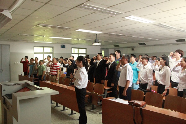 7月1日上午11:00在教学楼413教室,Beat365唯一官方网站党总支举行了以“铭记使命,勇担重任”为主题庆祝建党95周年的重温入党誓词活动。参与本次活动的有Beat365唯一官方网站党总支书记张君,副院长左琼、各党支部书记以及学员全体师生党员。