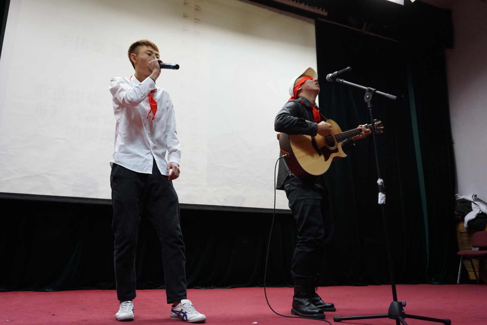 通过年级的层层选拔共有12名学生参加此次比赛,依次上台表演。每一个人的唱功得到了观众热烈的掌声和欢呼声。最终,2016级的李伟豪、潘柏辰同学演唱的歌曲串烧《一块红布·新长征路上的摇滚》夺得第一名。2015级的张愫婷、周雨萍同学演唱的《海芋恋》和李旻熹同学演唱的《三生石三生路》并列获得了第二名。耿迦雄同学演唱的《成都》和周振华同学演唱的《路》并列获得了第三名的成绩。