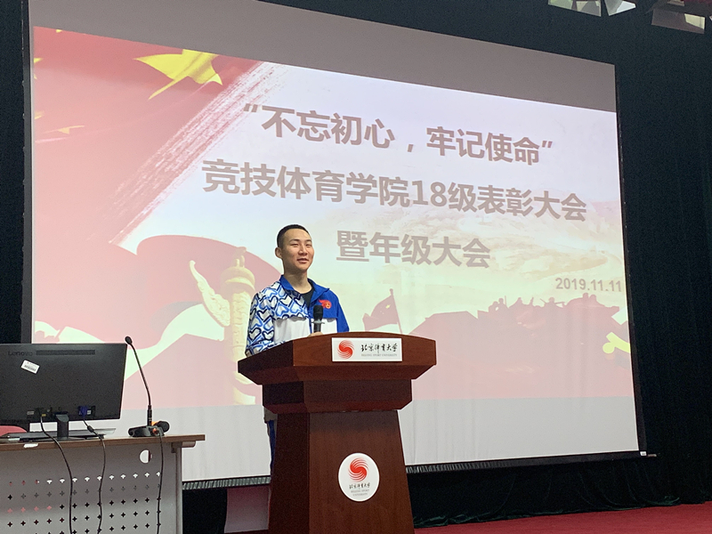 首先,李显老师谈到关于在大学期间如何抓住学习的机会,造就自我。其次,国庆“优秀标兵”代表李兆亿上台进行演讲发言。李兆亿同学回忆到,在国庆准备期间,他与所有参加国庆活动的同学牺牲暑假休息时间,投身于为祖国做贡献中。虽然每天的工作很枯燥,但每一位同学都严格要求自己,精益求精的完成使命。秉承着“追求卓越,永不言败”的精神。同时李老师对参加国庆活动的同学以及“三好学生”、“优秀干部”进行表彰。并谈论到, 李兆亿同学和全体参加国庆活动的同学的精神是值得我们学习的。