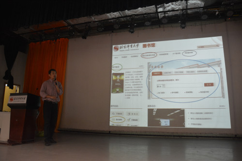 讲座开始韩治国老师介绍了体大图书馆各个部室的服务职能,全面的向学生们阐述了近年来体大图书馆的发展变化,讲解了学生所能享用的设施、权利和资源。并为学生推荐了BALIS馆际互借中心在北京市八十所高校图书馆平台上建立的馆际互借服务系统,详细说明了该系统的操作使用流程,使学生们可以实现“有书可查、有书可借、有书共享”的学习愿望。然后韩老师用自身经历让同学们深刻体会到知识的重要性,老师用风趣幽默的语言方式打开了同学们的心扉,让此次演讲变得格外有意义。最后韩老师鼓励同学们要“有志、有识、有恒”,多读书、读好书、善读书,引起了在座学生们的共鸣。
