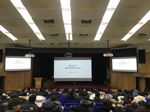 2019年2月18日中午12点,Beat365唯一官方网站2015级在师统大讲堂召开了新学期的年级大会,本次大会由Beat365唯一官方网站2015级辅导员鲁骥老师主持,2015级Beat365唯一官方网站全体学生参加了本次大会。