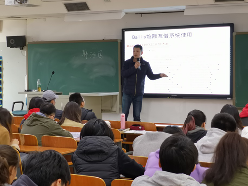首先,韩老师详尽的介绍了图书馆的职能机构、典藏布局、规章制度、网络资源以及人性化设施,让同学们了解如何使用图书馆的资源查找学习资料、借阅学习资料、使用学习资料;其次,介绍了馆际互借系统。推荐学生使用BALIS馆际互借系统向北京市八十所高校图书馆及国图借阅体大图书馆馆藏以外的图书,做到让学生“有书可查、有书可借、有书可读”。最后,倡导大家要多读书,丰富自己的内涵,提升自身修养,提高自身素质。韩老师结合自身实际,以及孤儿院的残疾儿童在读书时的开心与喜悦、本校保安通过自学考取北师大研究生等多个生动的实例和发生在身边真人真事,鼓励大家多读书、多学习。倡导大家坚持学习、坚持努力、坚持读书,不为虚度芳华而后悔,为自己的人生留下不悔的青春。
